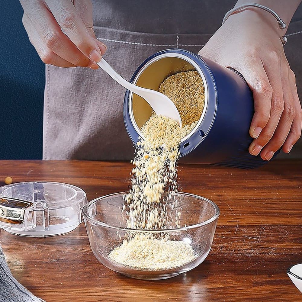 سهلة الاستخدام والتنظيف: المطحنة الكهربائية سهلة الاستخدام والتنظيف، مع زر ضغط لبدء التشغيل وتصميم قابل